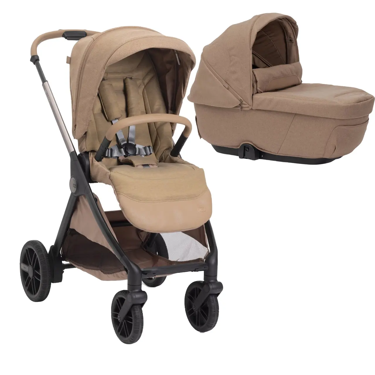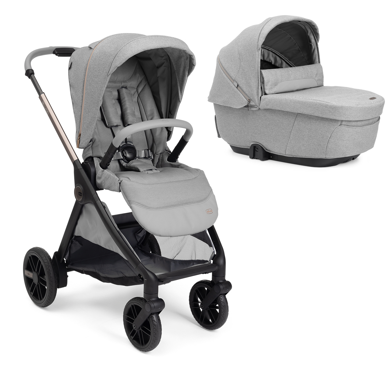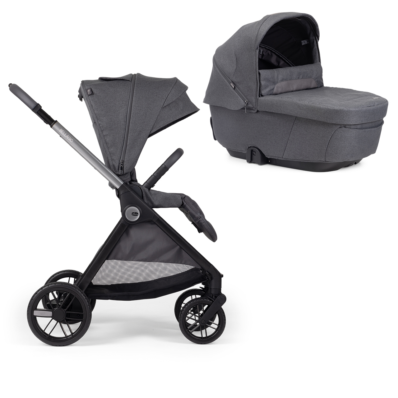 Bellagio ofrece un sistema de viaje completo: es compatible con el capazo Flexi, el capazo Gran Comfort, las sillas de auto Kory y la silla de auto First-Seat Recline.